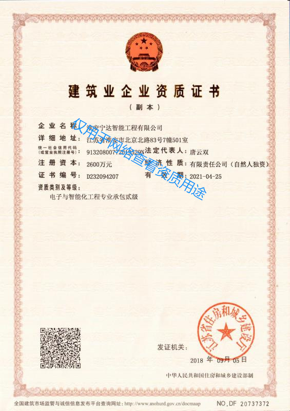 寧達(dá)智能建筑業(yè)企業(yè)資質(zhì)證書(shū)